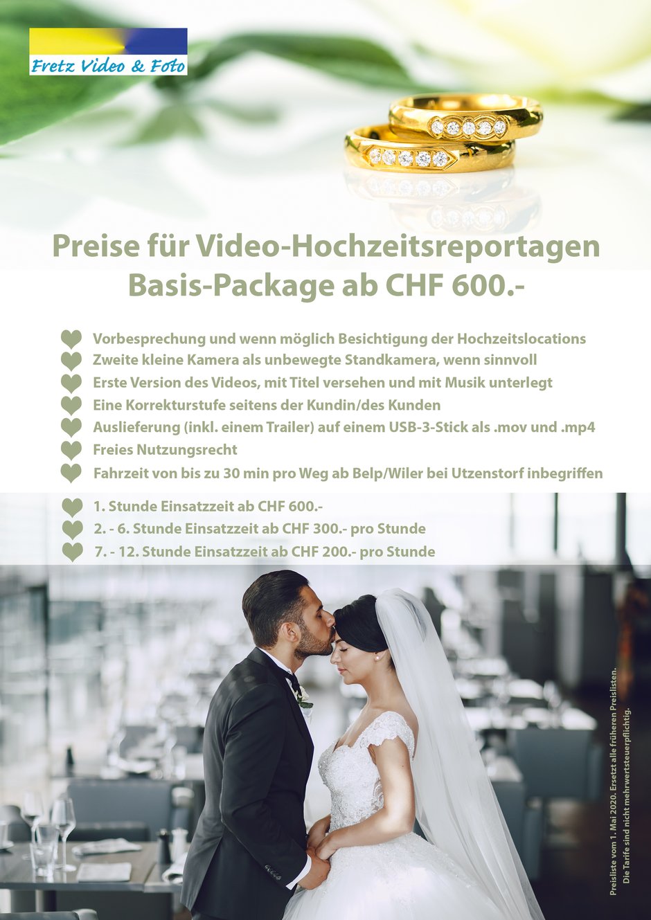 Nachdem wir in der letzten Woche die Preisliste für die Hochzeitsfotografie aktualisiert haben, folgt heute die revidierte Preisliste für Videoreportagen.